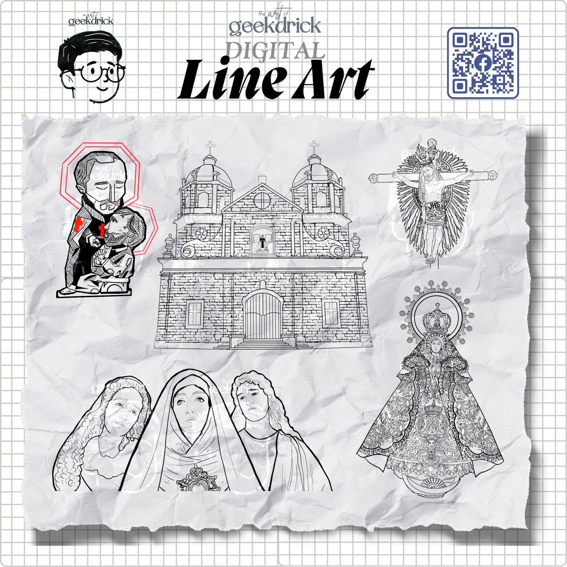 Includes: black or colored line work, transparent or white background.